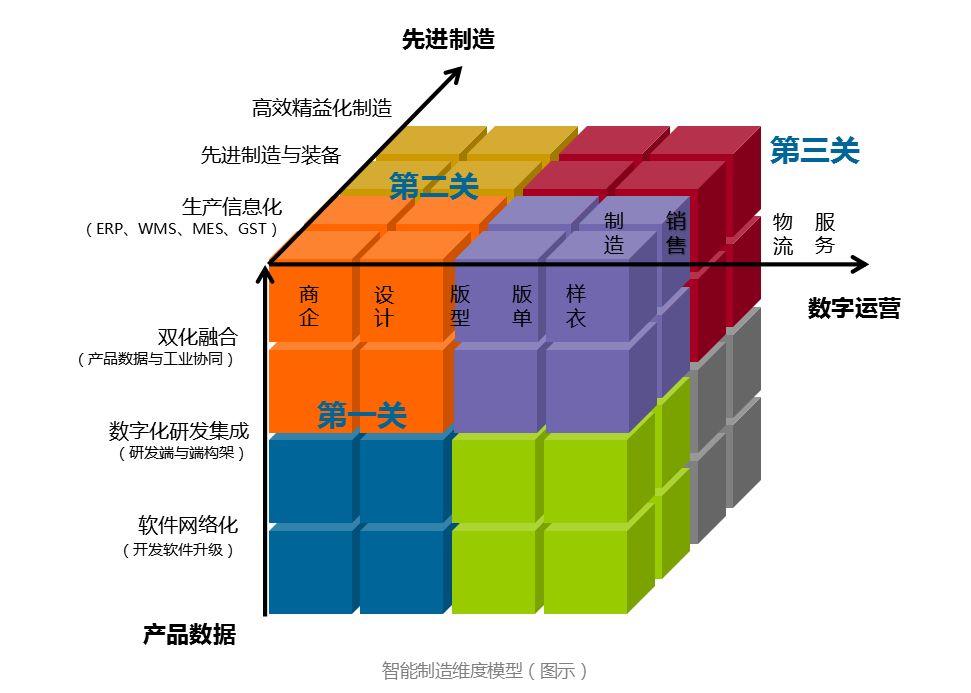 智能制造以产品数据化为基础,以先进制造与装备为载体,以高效精益化制造为核心,实现消费需求侧与产品供给侧的精准对接,更好地推进服装产业互联网经济发展。