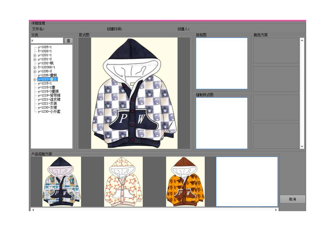 根据款式,进一步确定企划方案,进行自动搭款或手动搭款,形成系列搭配方案。
