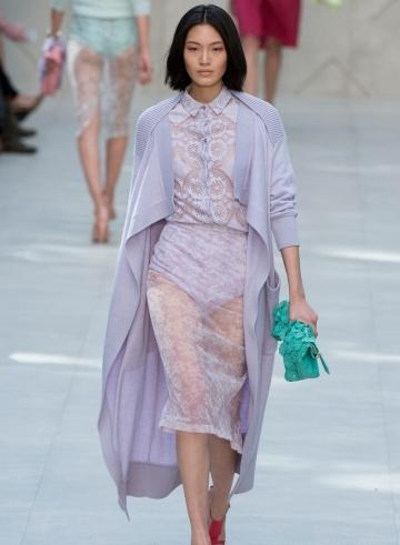 丁香紫易给人冷艳高贵的感觉,本季设计师们纷纷中和这一视觉感受,在服装材质与细节上增添女性温婉魅力。例如 Versace,重叠交错的裹层晚礼服恰到好处的展现女性迷人身体部位;细节上 Giorgio Armani、Giambattista Valli、Burberry Prorsum 分别以雪纺流水银线点缀、淡雅花朵镶嵌、透视蕾丝元素来施展女性魅力。此外,像3.1 Phillip Lim、Alexander Wang、DKNY 品牌的运动风格演绎也是本季可以考虑的选择。