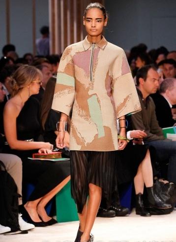 大地色系或许不大适合亚洲人肤色,所以其妆容与搭配上尽求简约,避免繁琐。本季,像 Akris、Céline、Givenchy 、Moschino 品牌的异域风格演绎将大地色系打造出一派神秘特色;而 Christian Dior、Christophe Lemaire 的经典卡其色风衣则是衣橱的必备单品;甜美叠加如 Isabel Marant 的堆砌荷叶边、Karen Walker 蝴蝶结装饰、Véronique Leroy 溜冰短裙,各种风格丰富春夏搭配选择。