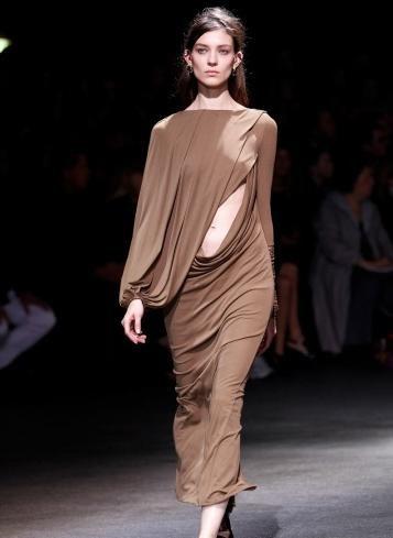 起重工棕褐、墨绿、暗橙、土黄等等色彩,都属于大地色系。而在人们惯常的印象中,大地色系是更适合秋冬季的色彩,不过在2014春夏,大地色以反季节的姿态成为了春夏秀场上频繁出现的潮流色彩。不过与秋冬季的大地色系运用不同的是,在春夏季服装设计师们削弱了大地色的厚重感,更趋于轻薄淡雅。
