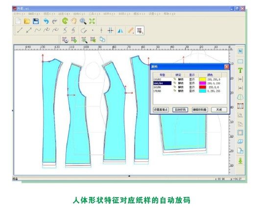 根据二维纸样与三维人体的对应关系,自动生成不同规格号型人体对应纸样的放码结果,自动放码既可以用于大规模的服装生产,也可以用于个性化的服装的量身定做。
